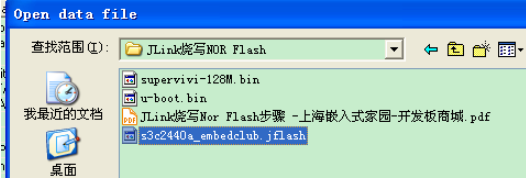 File——open ,打开mini2440光盘中的“JLink烧写NOR Flash”下的“s3c2440a_embedclub.jflash”工程;