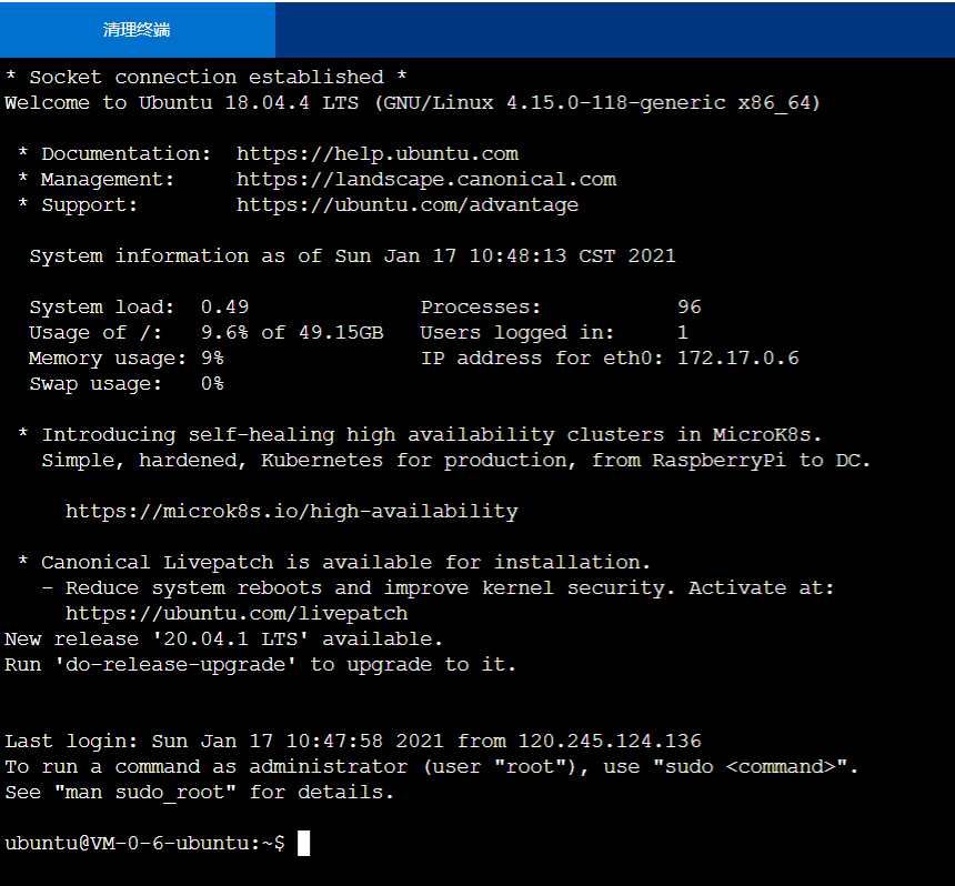 2)输入我们云服务器的账号与密码,账号默认为root,密码为前面重置密码所更改的密码,成功登录