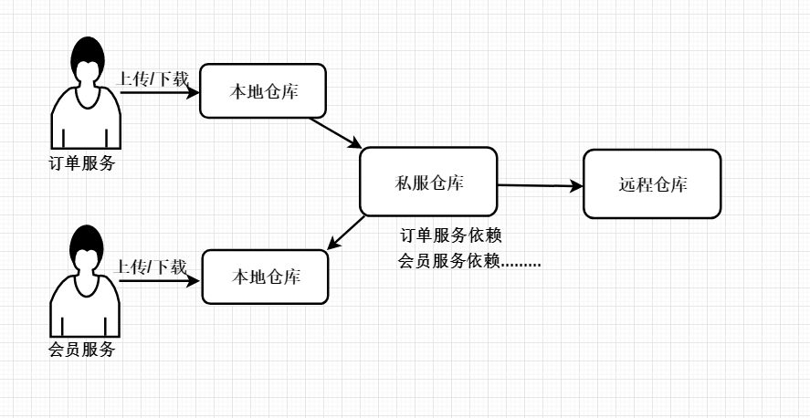 2.为了节省带宽和时间。当本地Maven项目需要下载构件时,先去私服请求,如果私服没有,则再去远程仓库请求,从远程仓库下载构件后,把构件缓存在私服上。这样,及时暂时没有Internet链接,整个项目还是可以正常使用的。也降低了中央仓库的负荷