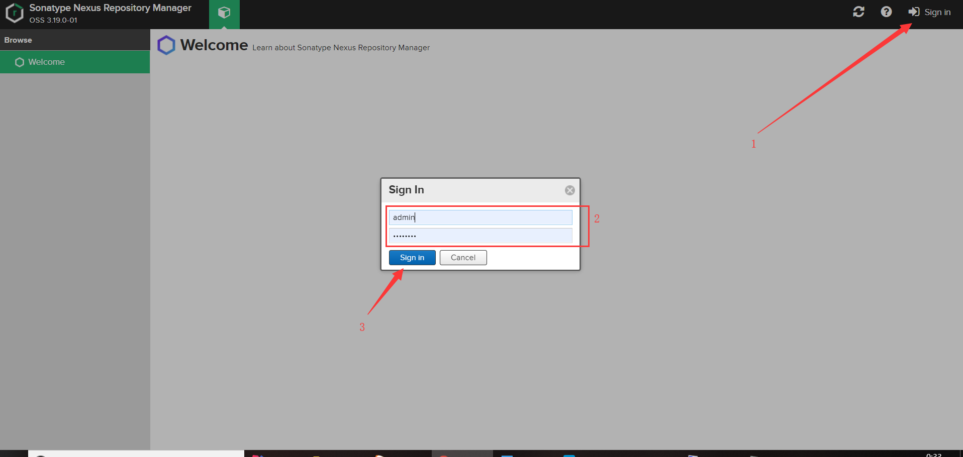 估计等待1至2分钟docker run -d -p 8081:8081 --name nexus -v /root/nexus-data:/var/nexus-data --restart=always sonatype/nexus3 - 访问