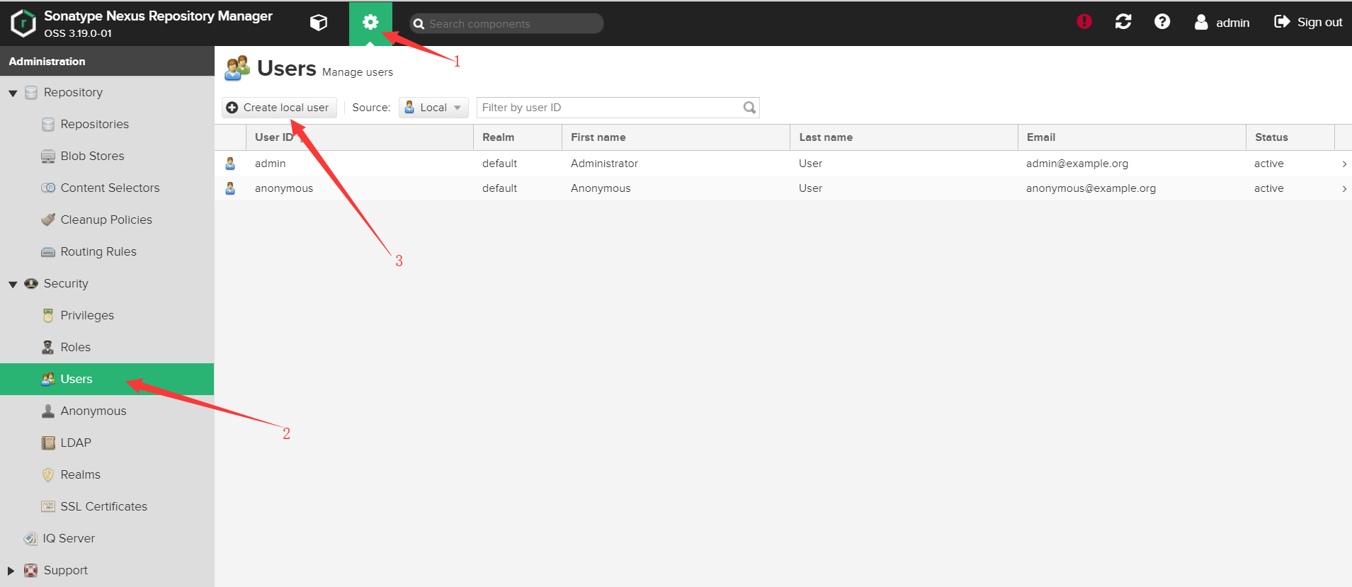- 上面步骤已经完成了在nexus中完成了仓库和用户的创建,记住如下信息