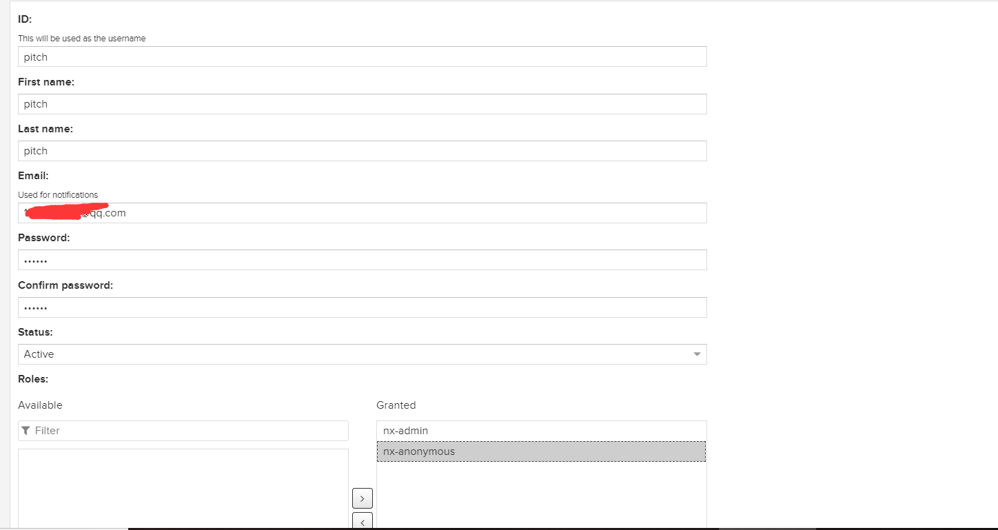 选择'Roles'项,选择'nx-admin'和'nx-anonymous'