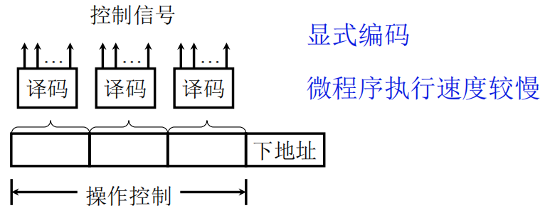 这种方式含义清晰,而且只要微命令从控存读出,即刻可由控制字段发出命令,速度快。但由于机器中微操作命令甚多,可能造成控存容量极大。