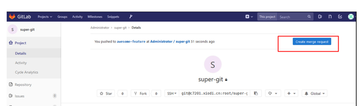 2.如果页面上没有 Create Merge Request可能是版本问题,请看下面的;