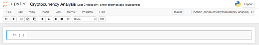 当环境和依赖包都安装好之后,运行 jupyter notebook 来启动 iPython 内核,然后用你的浏览器访问http://localhost:8888/ 。创建一个新的Python notebook,确保它使用的内核是Python [conda env:cryptocurrency-analysis]。