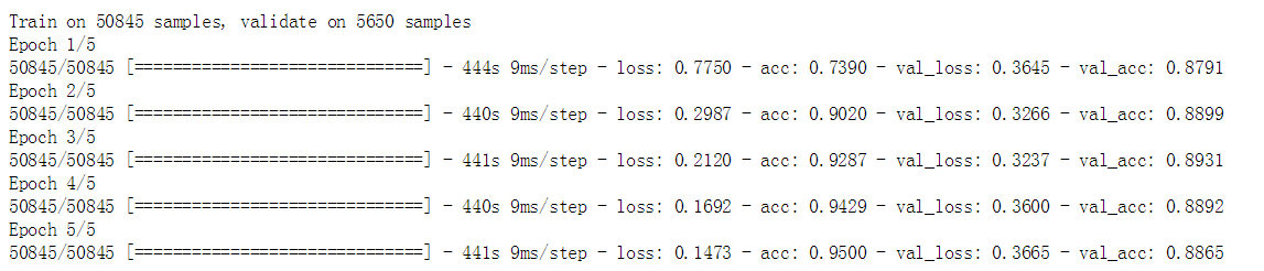 总体而言,LSTM模型比之前我们使用支持向量机(LinearSVC)模型的效果要好一些,准确率提高了差不多2个百分点。不过LSTM模型的训练时间要比支持向量机模型要长一些,究竟孰好孰坏,请读者们亲身尝试一下吧。
