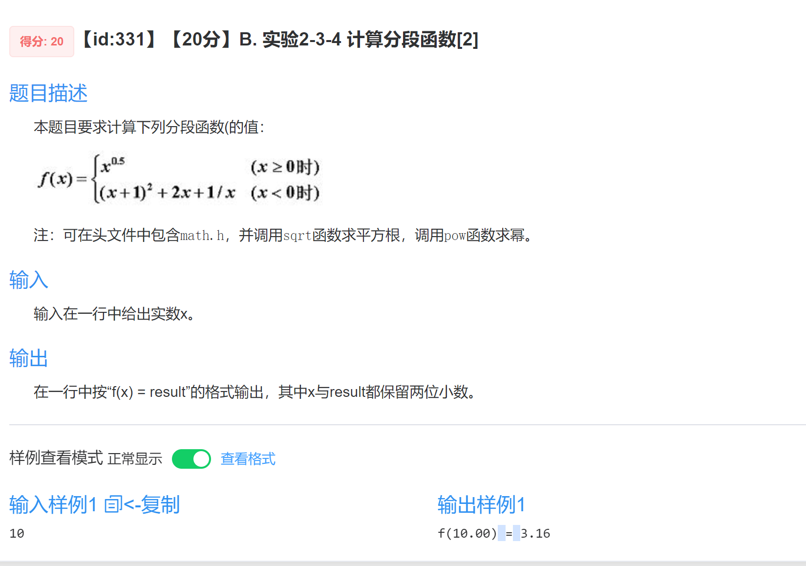 printf("f(%.2f) = %.2f",x,y);