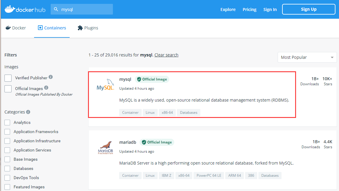https://hub.docker.com/search?q=mysql&type=image
