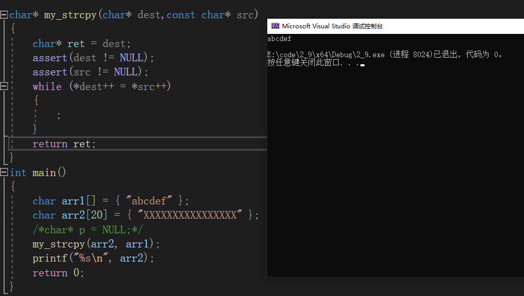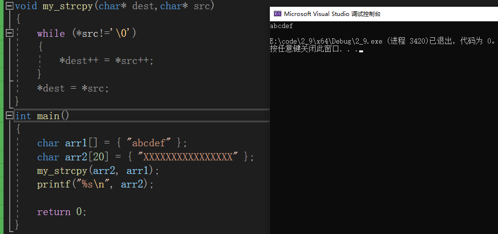 以上我们就成功的写出了一个自己的字符串拷贝函数,下面是这个函数的代码。