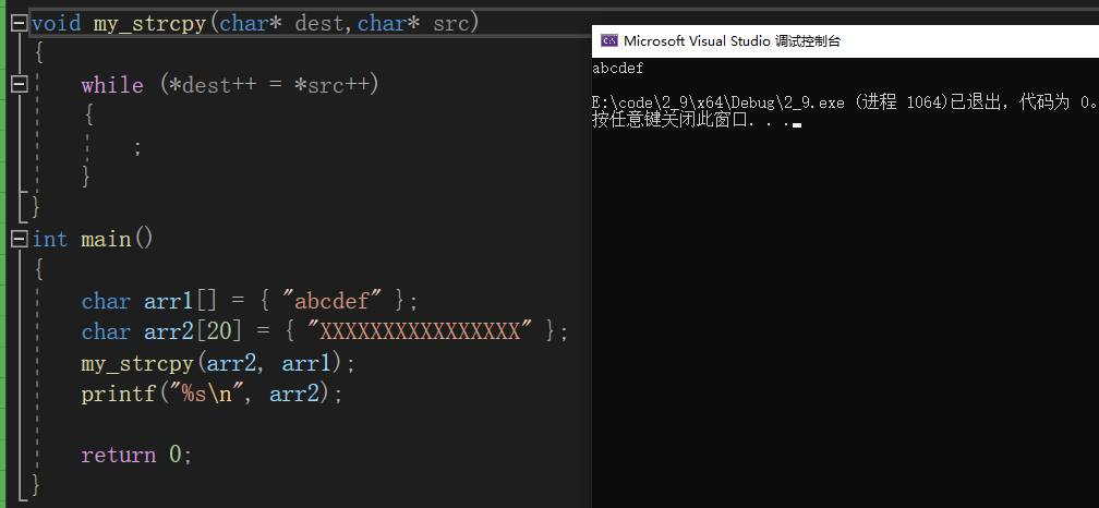 上面的代码虽然完成了拷贝字符串的任务,但是不够美丽,我们来对她进行一点小小的修改。