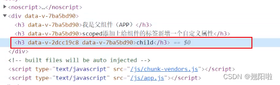 这里h3也就相当于根标签了,也具有父组件的data-v-7ba5b90属性: