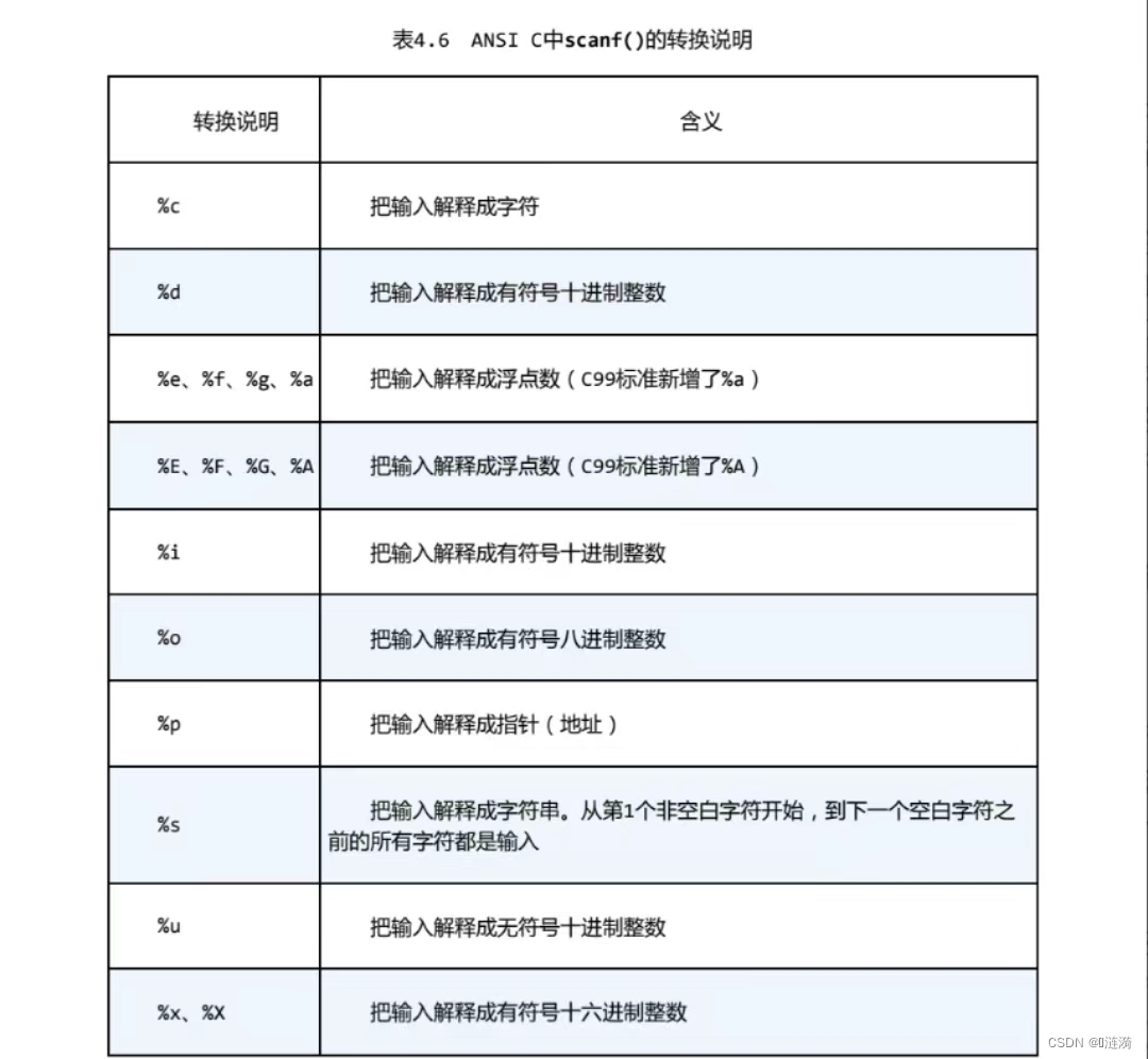 如果输入内容与转换说明不匹配,该值不会被赋值给变量,而是会被放回输入,在下一次读取输入时,首先读取该值。