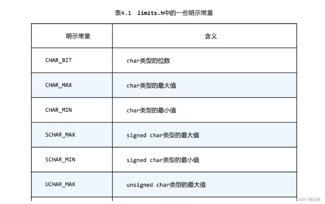 //此外,在名称前加前缀c_或k_也是一种命名约定,但不常用const int MONTHS = 12; //MONTHS在程序中只读而不可更改明示常量:头文件limits.h和float.h中分别提供了与整数类型和浮点数类型大小显示相关的详细信息,定义了一系列明示常量(在3.11中使用过)。