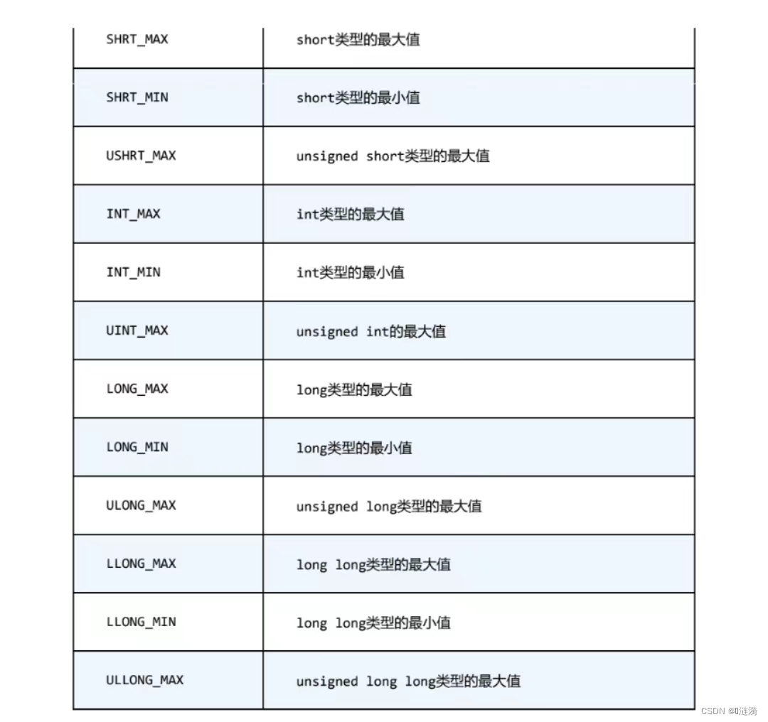 上表中FLT分别替换为DBL和LDBL,则分别表示double和long double类型对应的明示常量。