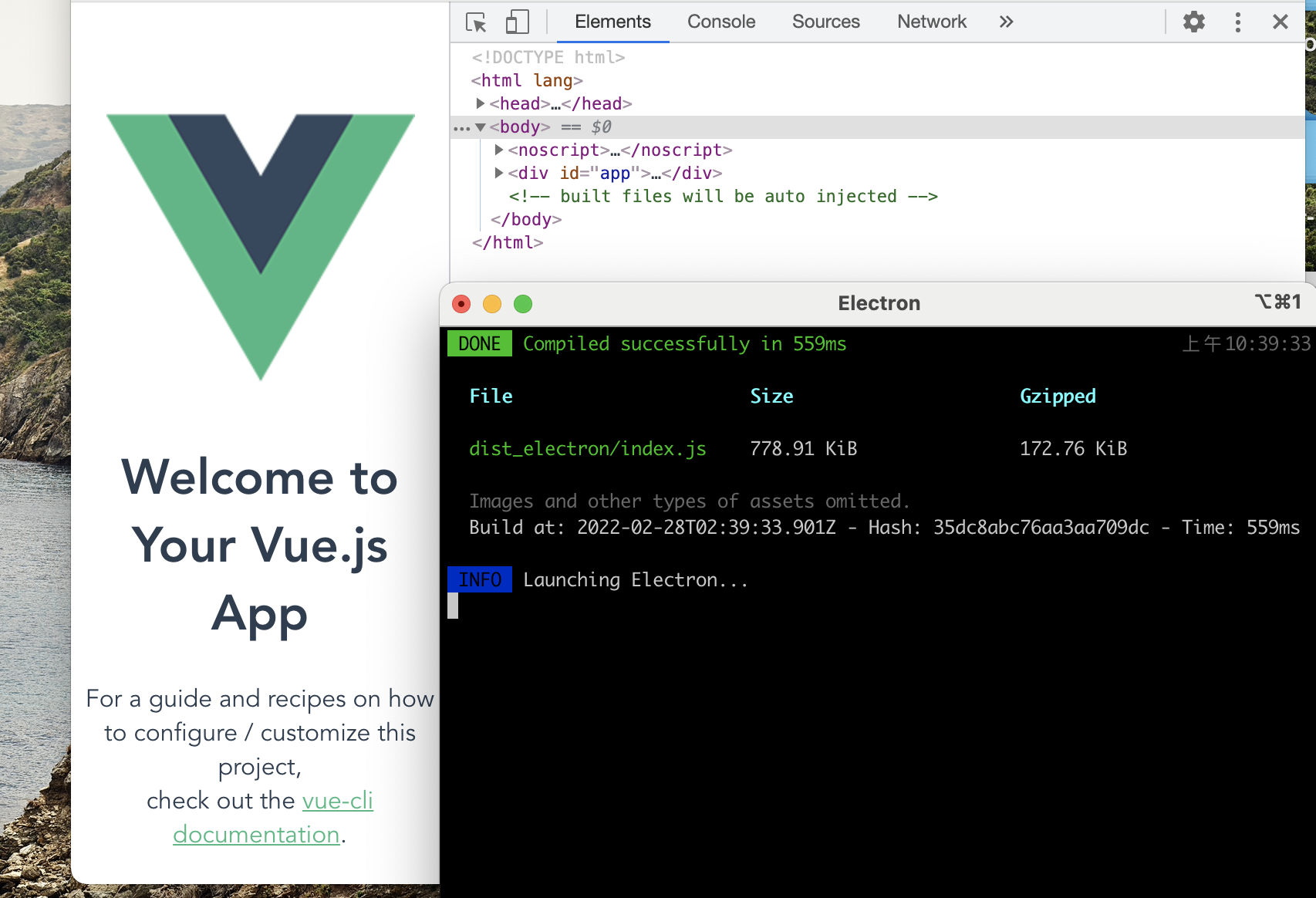 yarn run electron:serve执行后则展示出: