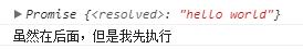 我们获取到了"hello world',同时timeout的执行也没有阻塞后面代码的执行,和我们刚才说的一致。
