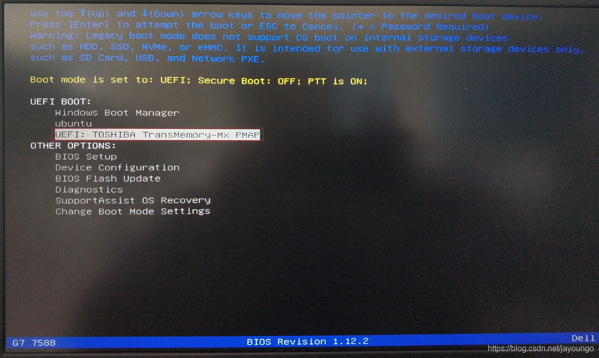 2.重启电脑,进入引导界面(测试机Dell开机按F12进入,其他品牌机器请替换),选择以U盘启动。