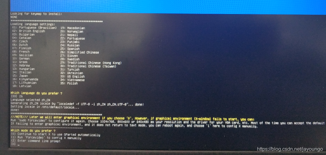 选择语选择语言: 输入“26”,回车