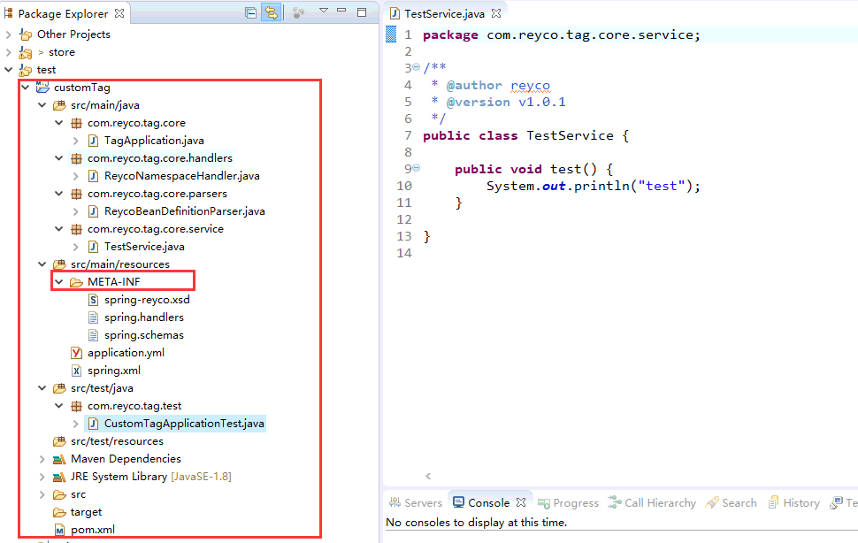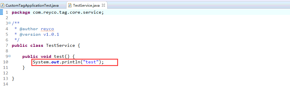 <housihai:reyco id="testService" class="com.reyco.tag.core.service.TestService"/>