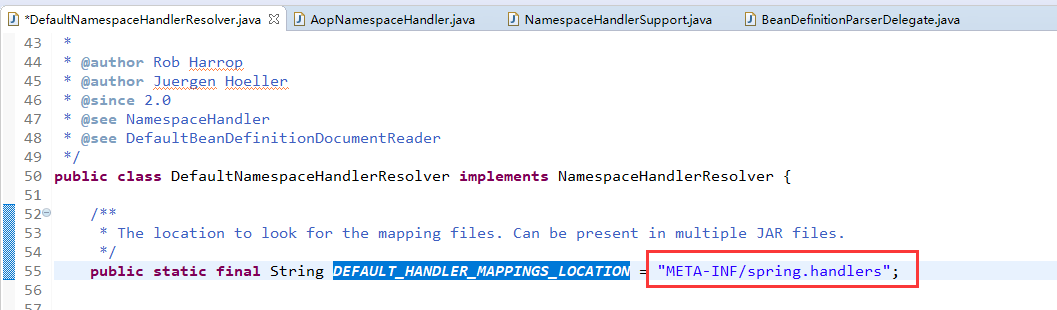 }4.编写META-INF/spring.handlers文件,指定我们NamespaceHandler