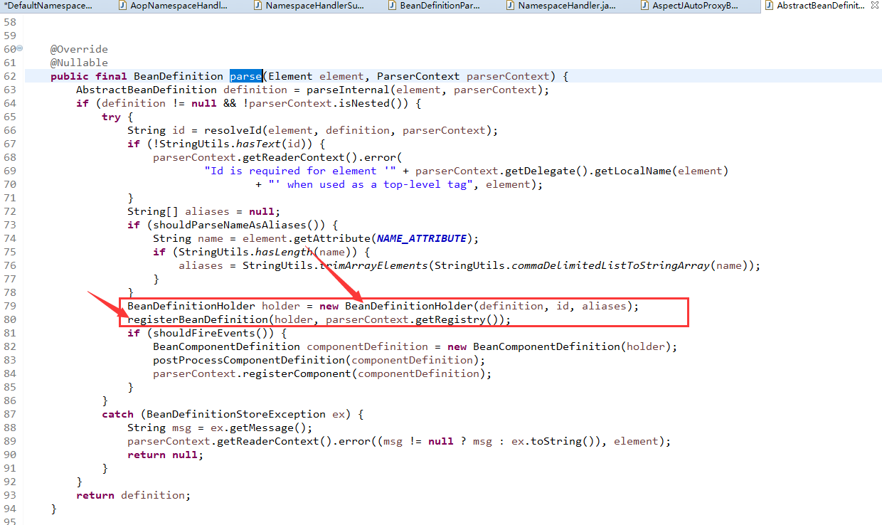 BeanDefinitionReaderUtils.registerBeanDefinition(beanDefinitionHolder, parserContext.getRegistry());