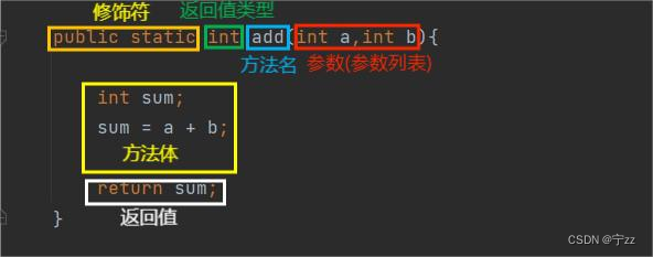 方法名:跟我们自己的名字差不多,用于调用方法和标识方法。