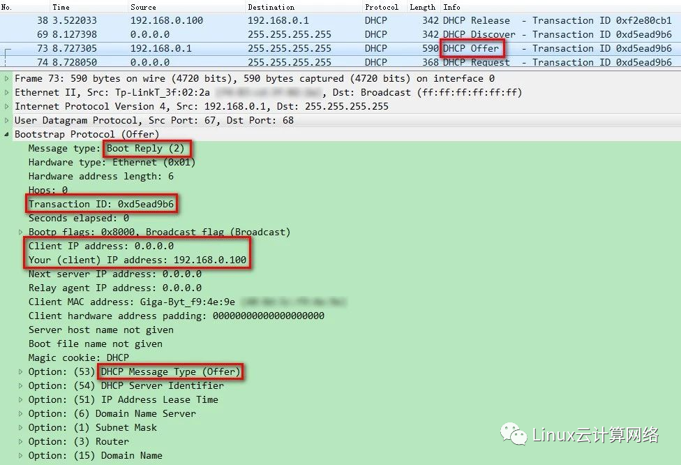 0.0.0.0yiaddr:“你的”IP 地址,Server 向 Client 提供的 IP 地址