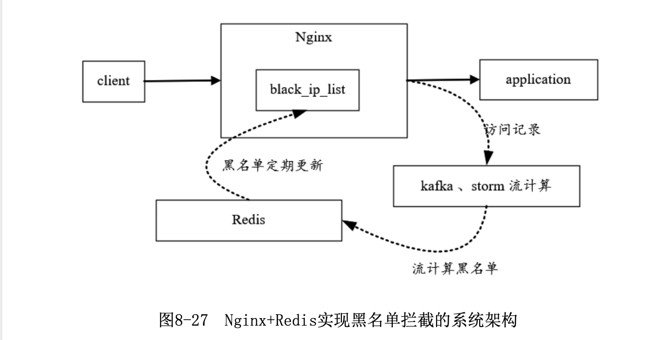 (3)在Nginx网关的access处理阶段,通过Lua脚本检查客户端IP 是否在黑名单中。