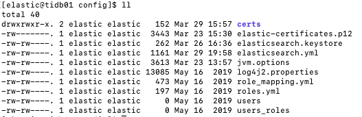 bin/elasticsearch-certutil cert -in config/instance.yml -out config/elastic-certificates.p12 -pass ""本文暂时未限制client相关的信息,所以后续也会在此基础上进行适配,至此 PKCS#12格式的验证文件生成完毕。