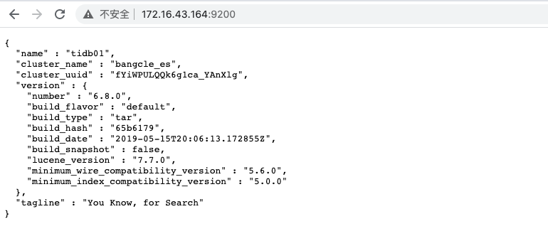 在浏览器输入:http://172.16.43.164(elasticsearch-ip):9200