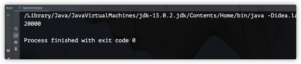 简单解释一下,我们开启了两个线程去执行increase()方法,如果没有任何保护机制,假设,当count的值累加到1000时,A线程从主内存中读取到寄存器的count值为1000,执行完“count++”操作后,寄存器中的count值为1001,刚想写入内存,B线程正好抢到了CPU的使用权,开始执行run()方法,由于未写入内存,B线程从内存中读取到的count值为仍为1000,执行完“count++”操作后,B线程成功地将1001写入内存,接着A线程将自己寄存器中的count值1001写入内存(覆盖了B线程的1001),由此导致,虽然执行了两个线程,但count的值只累加了一次,这样的情况多发生几次,计算结果自然就低于20000了。