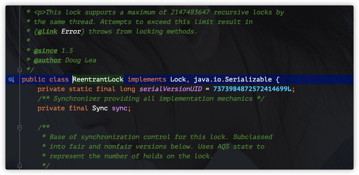 翻阅源码,可以看到 ReentrantLock 类实现了Lock接口: