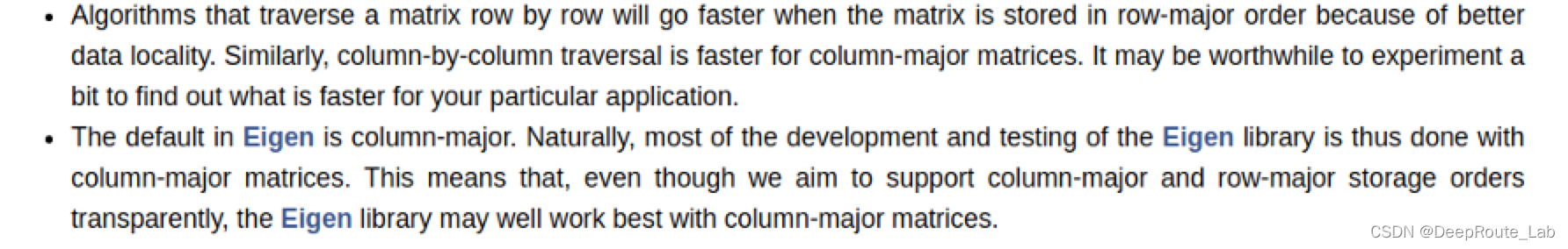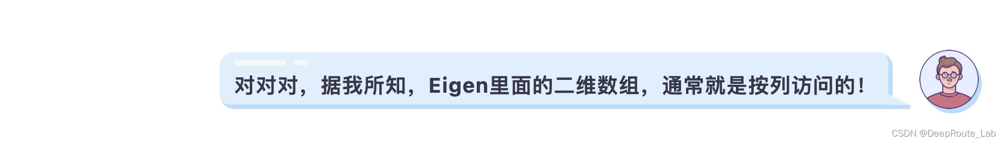 不错,一个更加准确的描述应该为,对于按行存储的二维数组,应该使用按行访问的方式;对于按列存储的二位数组,应该使用按列访问的方式。而Eigen中的数据,正是按列存储的。