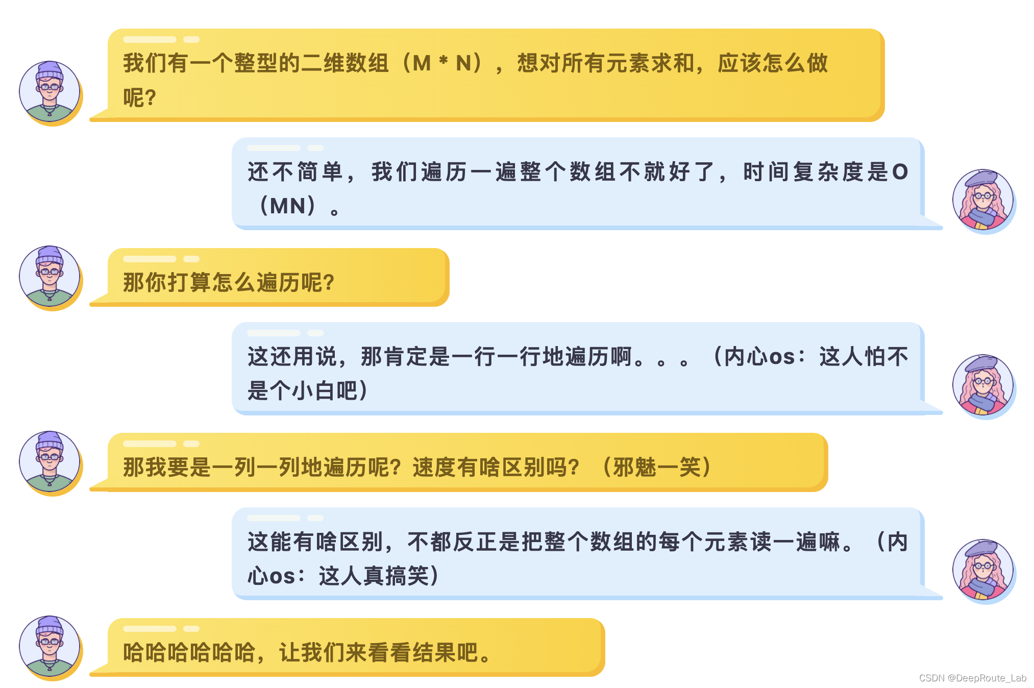 幸运的是,根据大多数人的习惯,如果没有特殊的需求,我们很自然地就会按照行优先(一行一行地)的模式来访问二维数组,因此这个问题在绝大多数情况下被自然而言地避免掉了。
