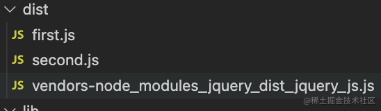 查看dist目录下,新增了一个vendor*.js的文件,把jquery 单独提取出来了