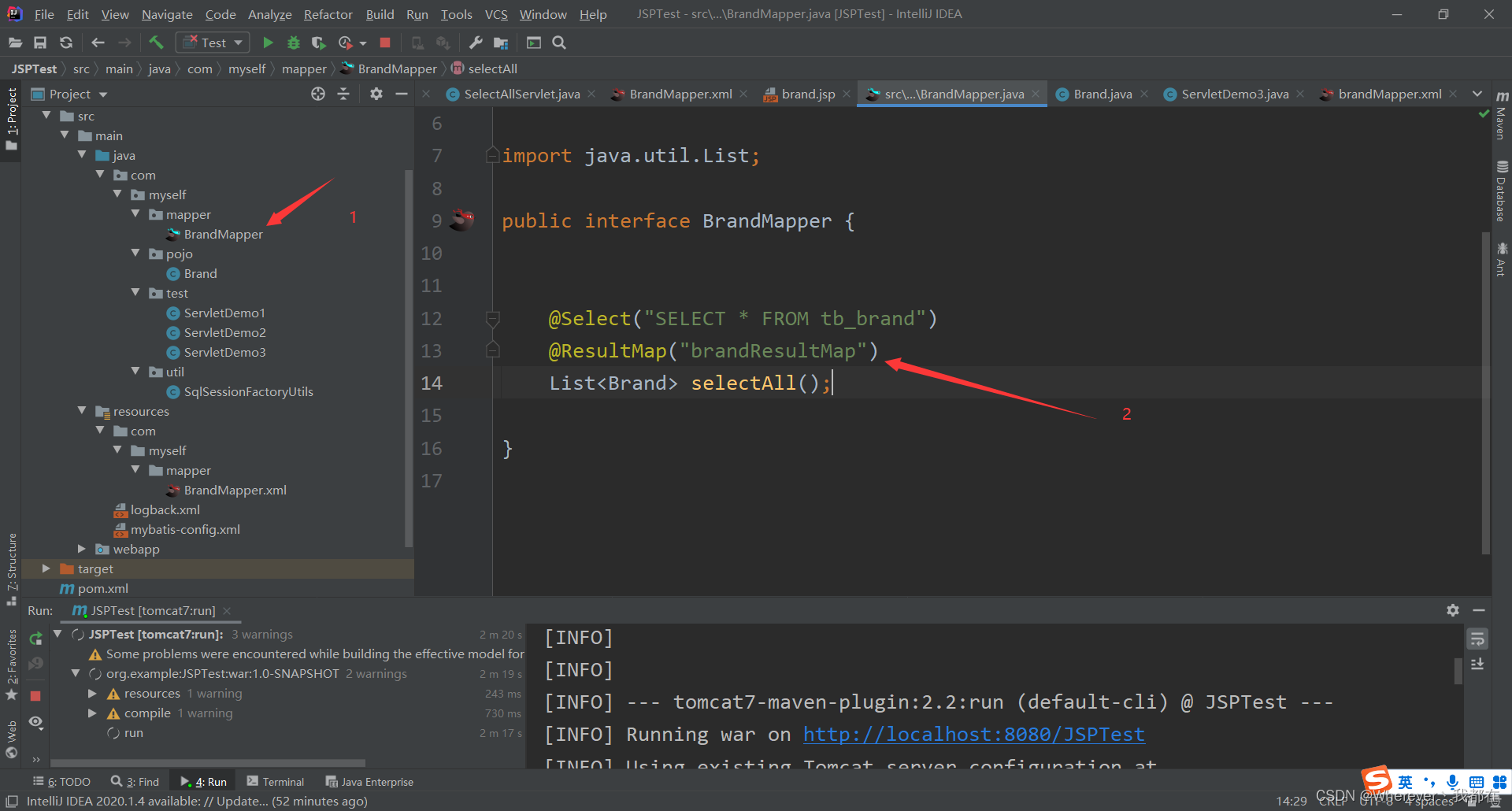 在mysql中,像brandname这种,mysql的命名一般使用下划线分隔(brand_name),而java则习惯用驼峰式命名(brandName),像这种一般就需要做映射。(具体看图)