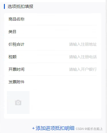 <div class="addDedution" @click="addDedution">+添加进项抵扣明细</div>2.定义数据