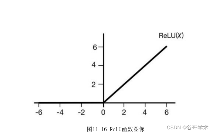用最广泛的是ReLU函数,它的函数图像如图11-16所示。