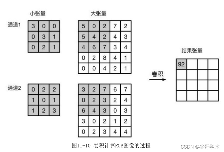 和,卷积核在RGB图像上依次滑动,最终生成的图像大小为4×4,如图11-10所