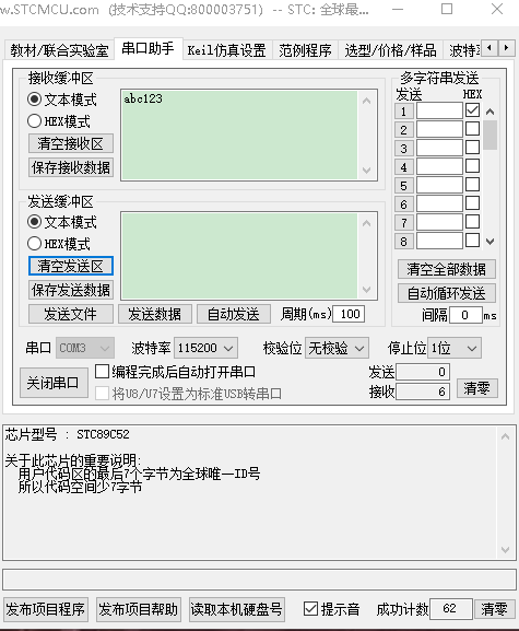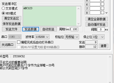 这里解释一下,第三幅图,接收显示的是abc123所对应的阿斯特码值,它是十六进制的。