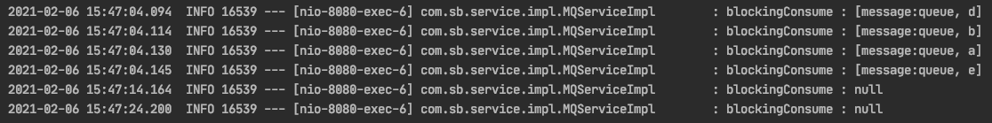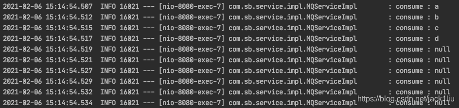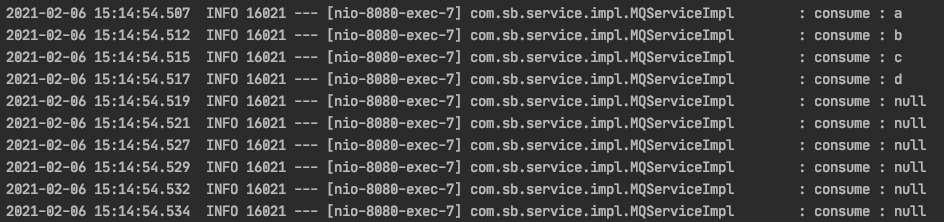 调用 http://localhost:8080/api/consume 消费队列里面的元素。