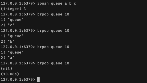 blpop 是阻塞式列表的弹出原语。 当给定列表内没有任何元素可供弹出的时候, 连接将被 blpop 命令阻塞。直到有另一个客户端对给定的这些 key 的任意一个执行 lpush 或 rpush 命令为止。