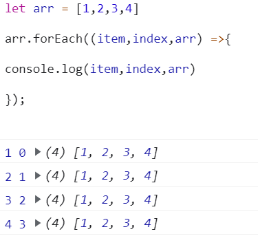 4.forEach() 遍历数组,无返回值,不改变原数组,仅仅只是遍历、常用于注册组件、指令等等。