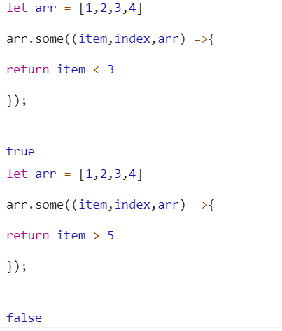 8.some() 遍历数组每一项,只要其中一项有,就返回 true,则停止遍历,结果返回 true。没有的话, 放回 false 不改变原数组