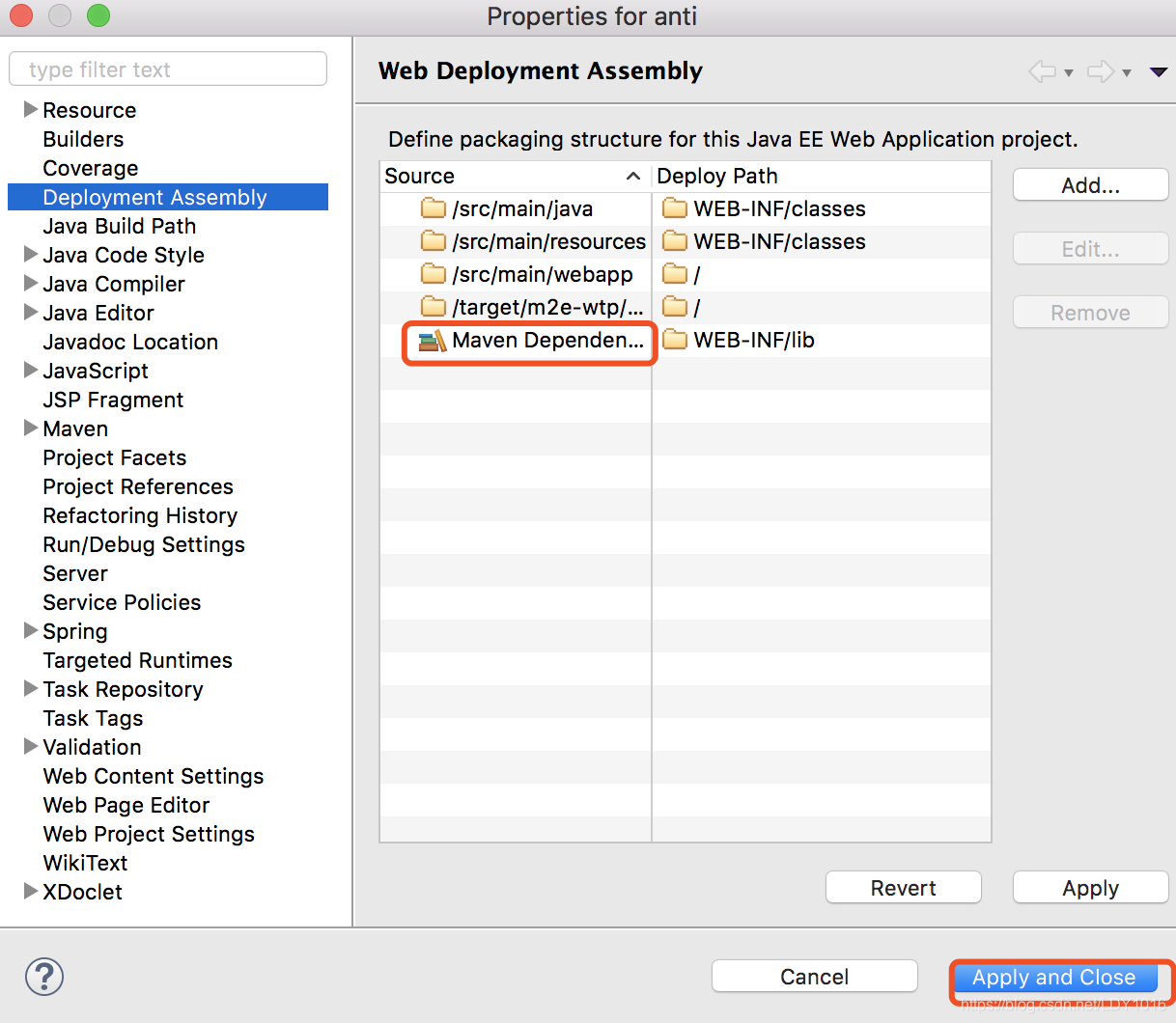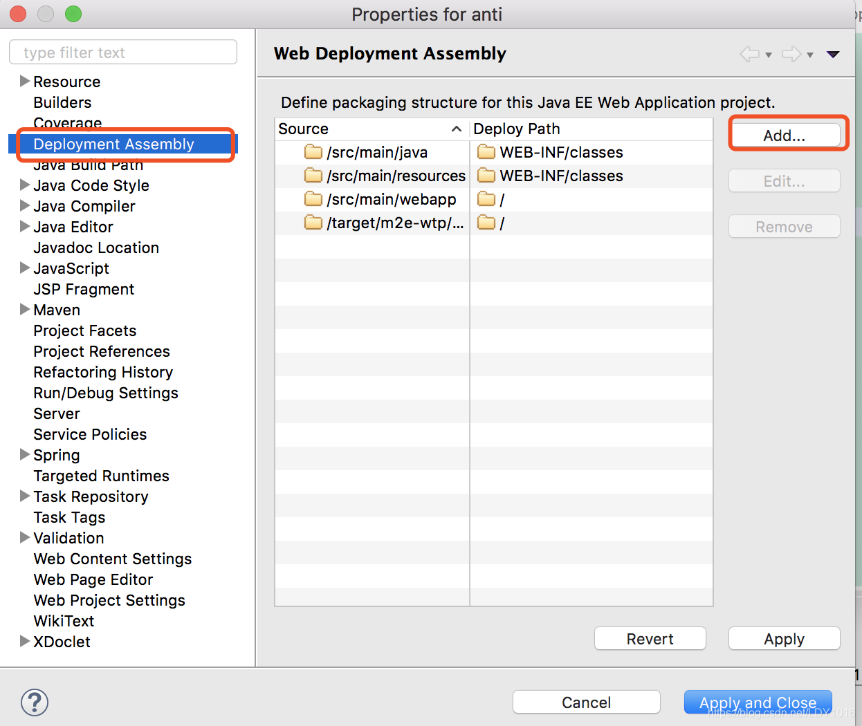 选择Deployment Assembly,在右边点击Add按钮