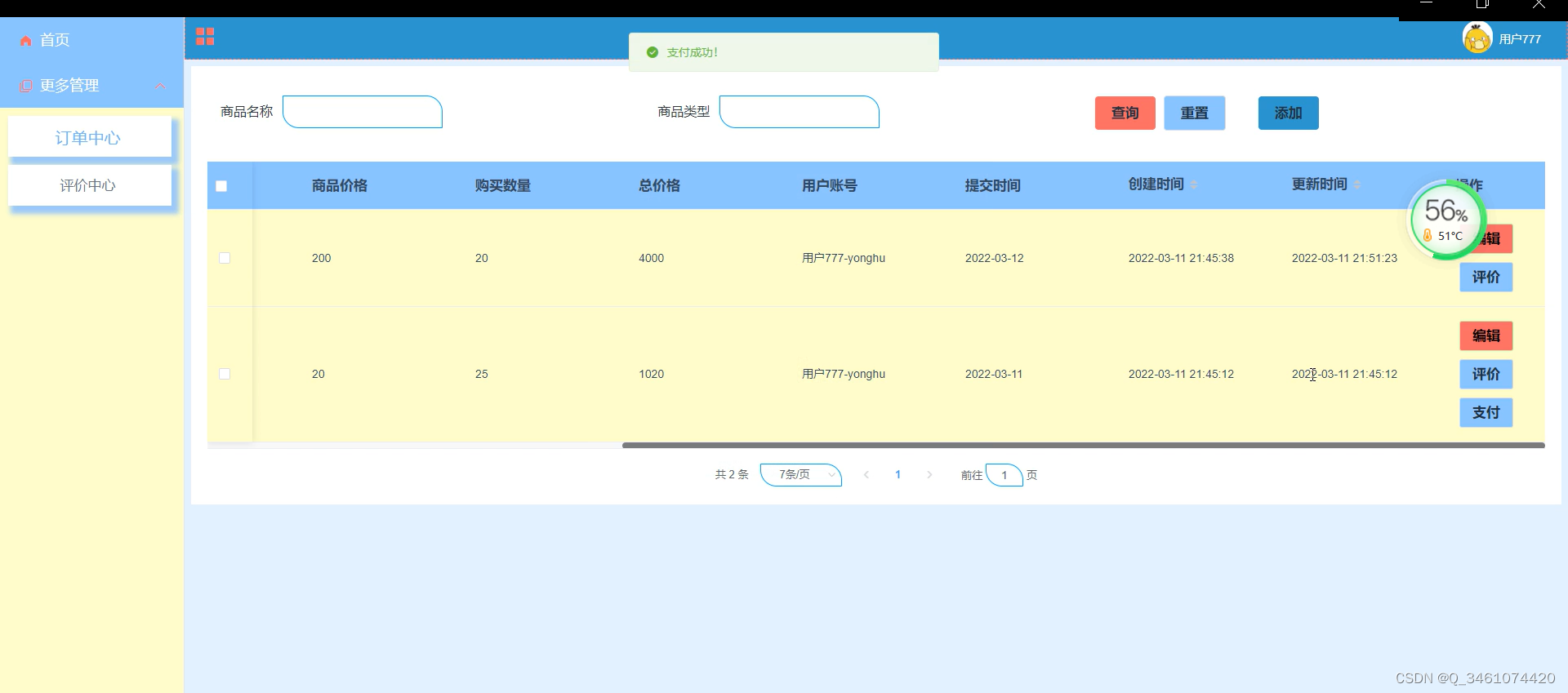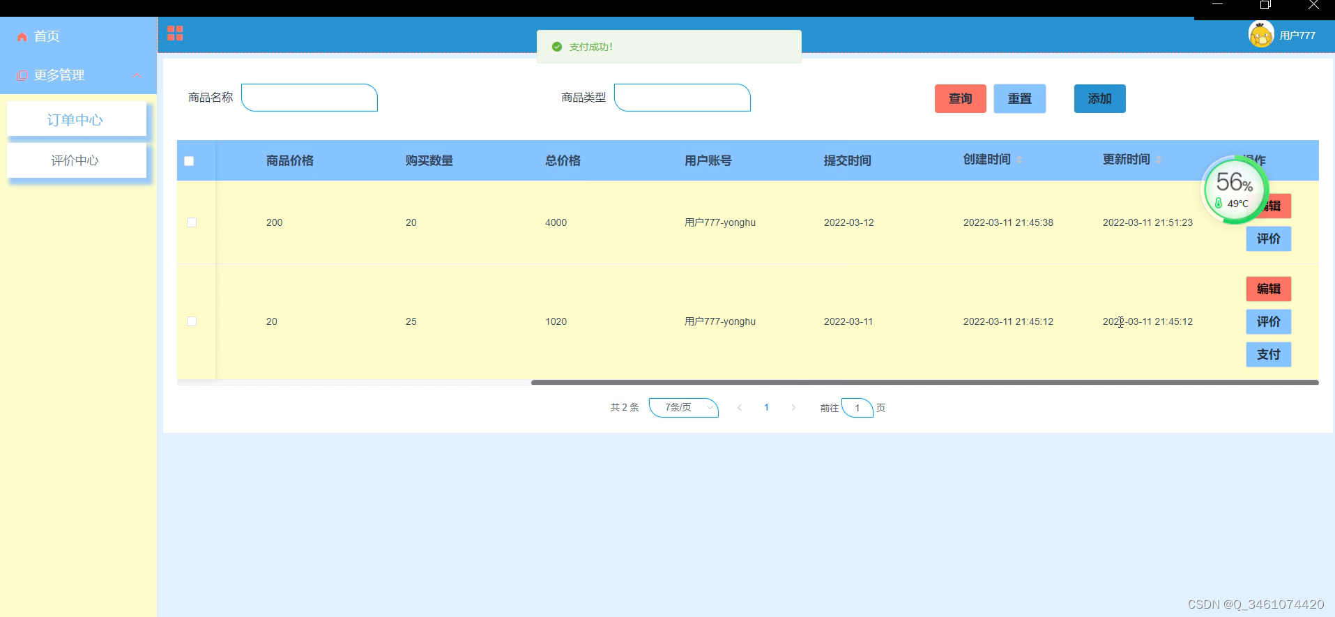 用户登录进入系统可以查看首页、订单中心、评价中心等功能还可进行相应操作,如图5-16所示。