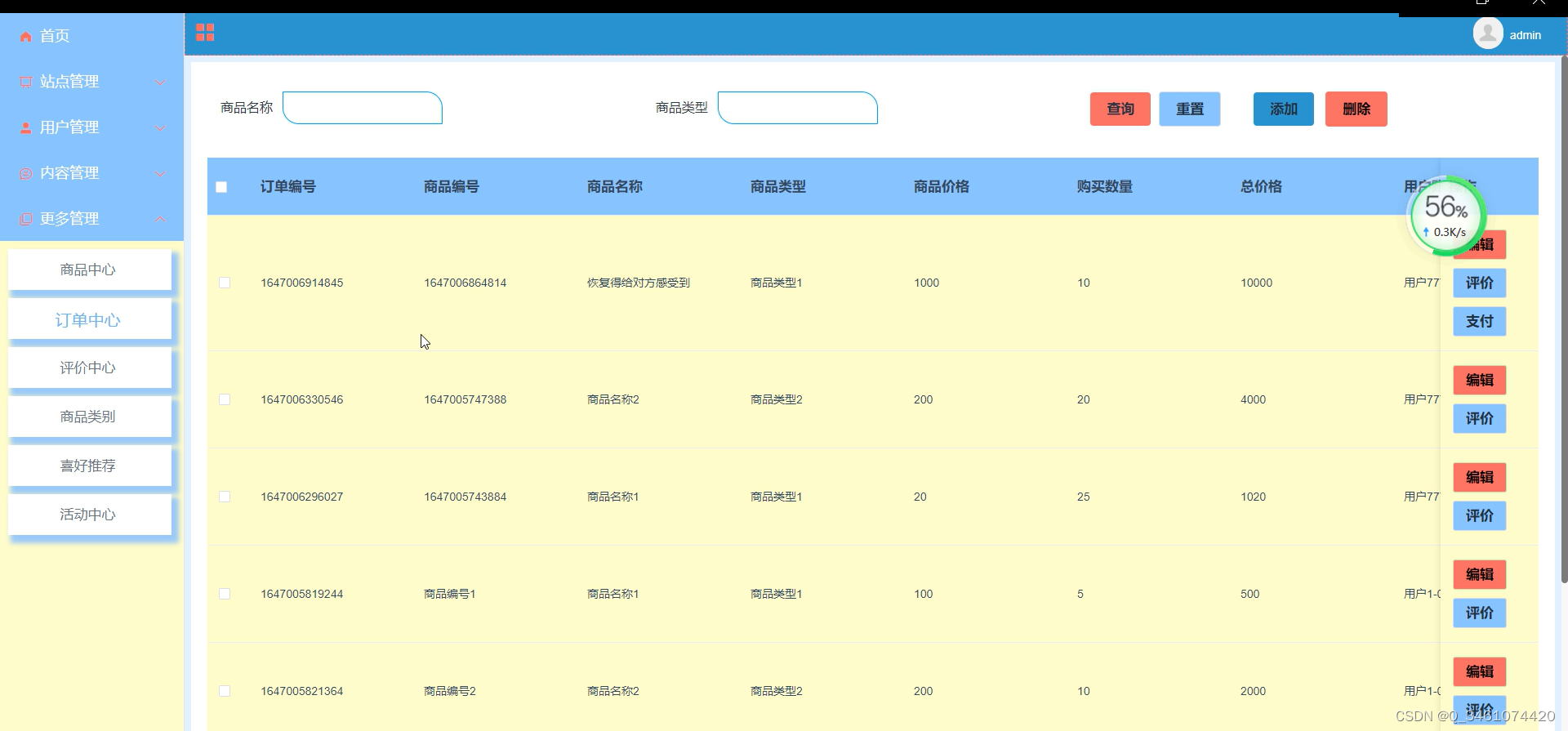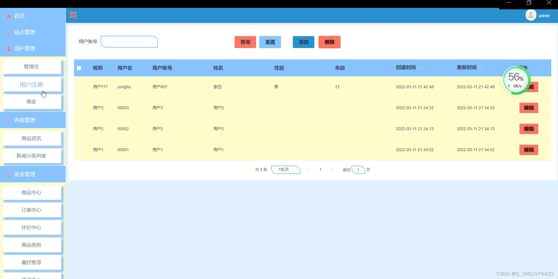 3、功能的完善性:可以管理首页、首页、站点管理(轮播图、公告栏)用户管理(管理员、注册用户、商家)内容管理(商品资讯、新闻分类资讯))更多管理(商品中心、订单中心、评价中心、商品类别、喜好推荐、活动中心)模块的修改维护操作。