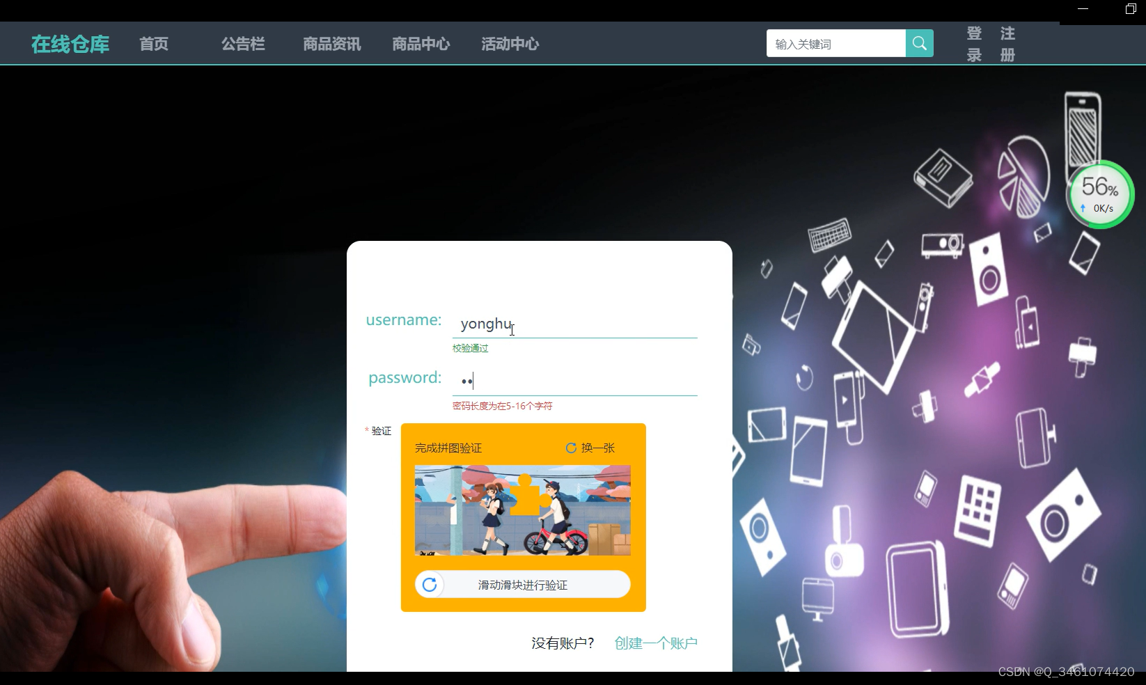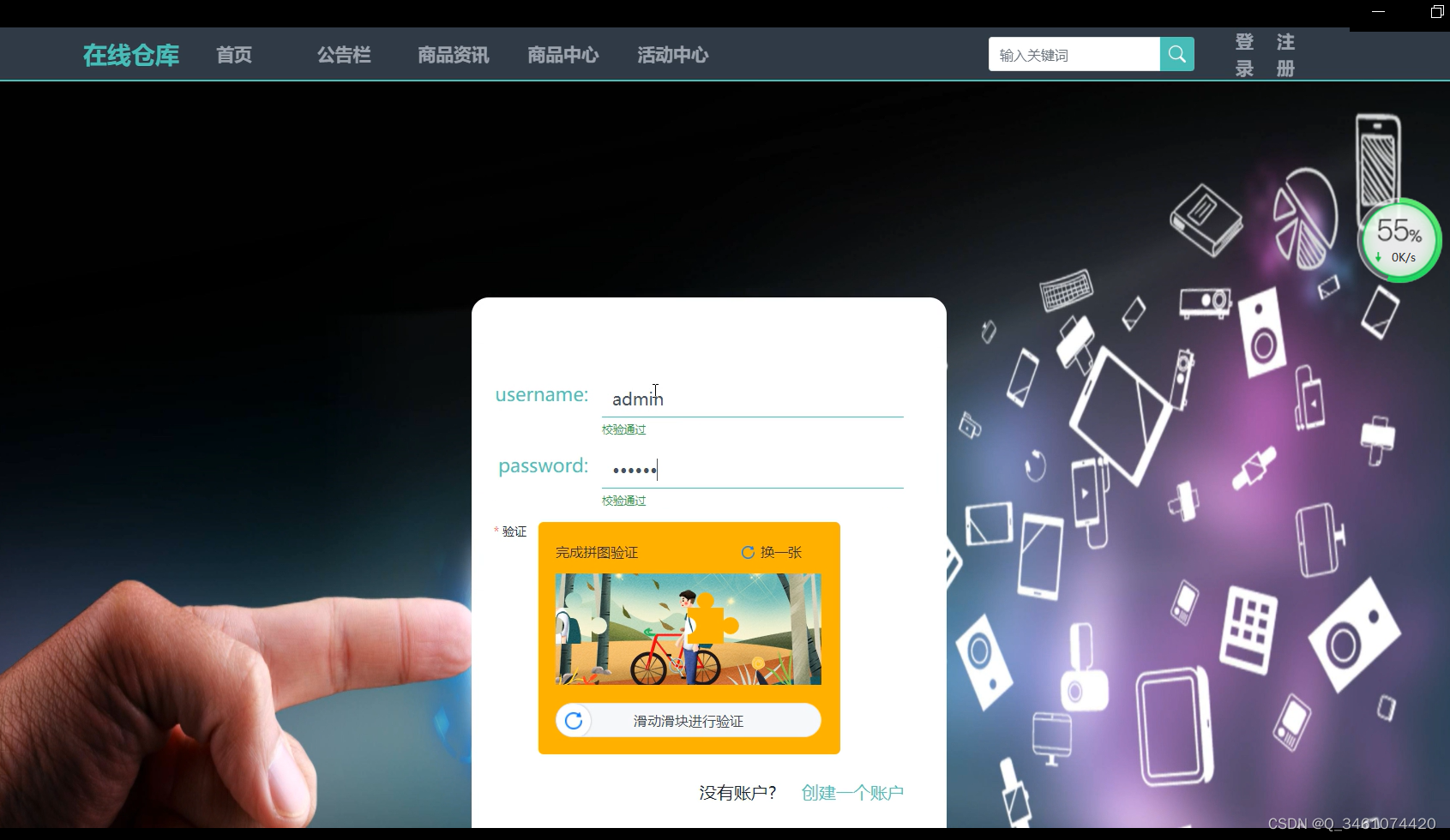 管理员登录在线仓库,在登录页面输入用户名、密码、权限验证码等进行登录,如图5-1所示。
