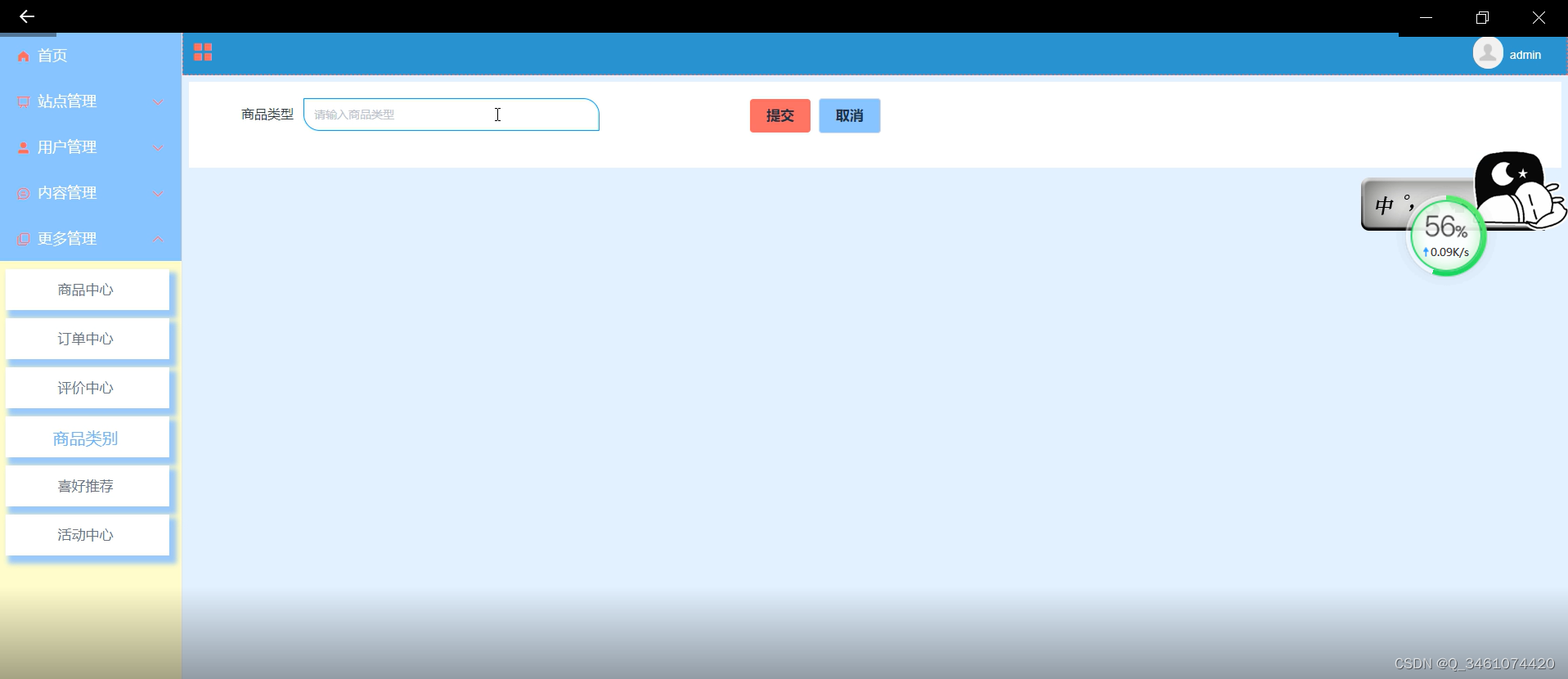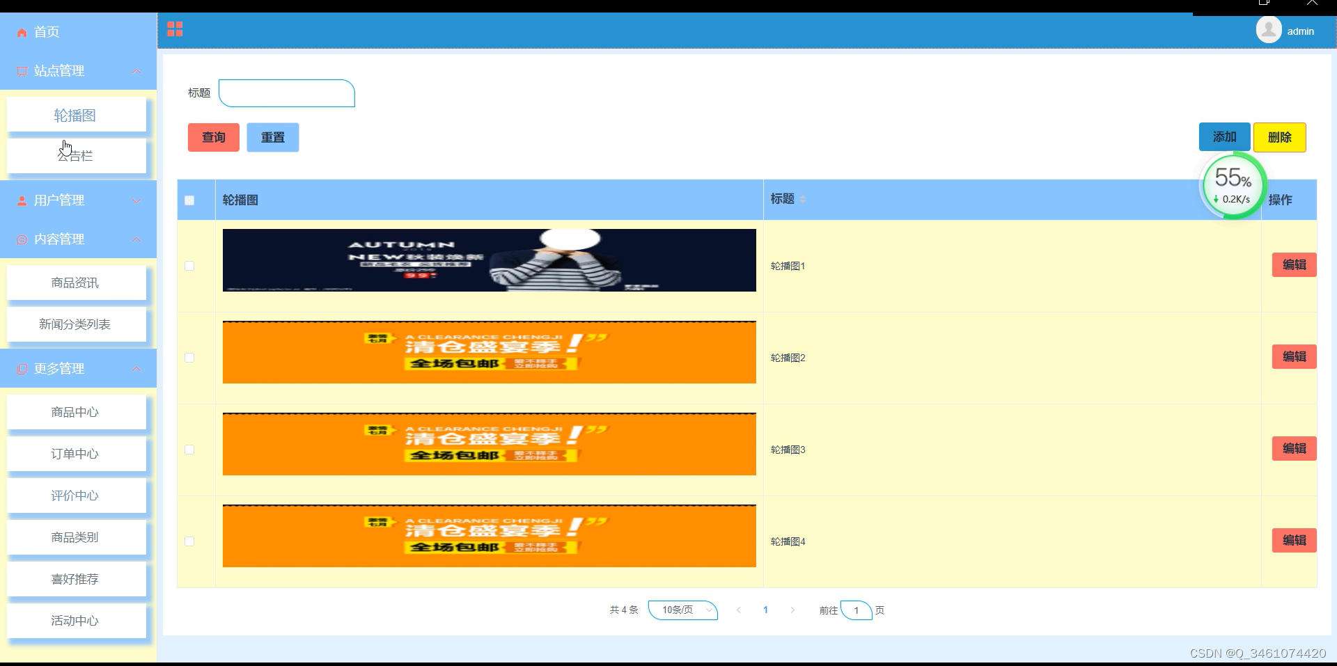 (1)功能要求:可以管理首页、首页、站点管理(轮播图、公告栏)用户管理(管理员、注册用户、商家)内容管理(商品资讯、新闻分类资讯))更多管理(商品中心、订单中心、评价中心、商品类别、喜好推荐、活动中心)等功能模块。