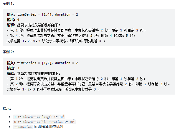 原题链接:495. 提莫攻击 - 力扣(LeetCode) (leetcode-cn.com)